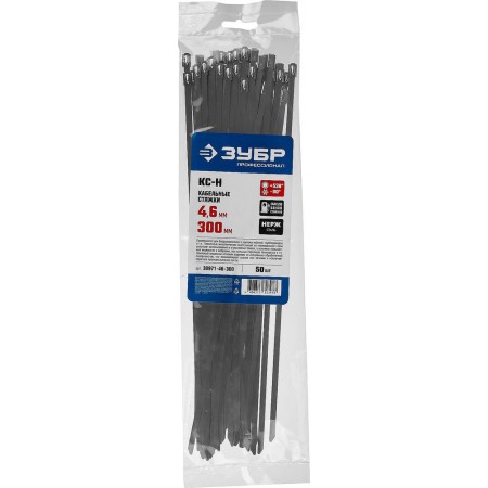 Кабельные стяжки нержавеющие КС-Н, 4.6 x 300 мм, 50 шт ЗУБР Профессионал 30971-46-300