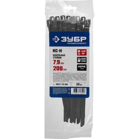 Кабельные стяжки нержавеющие КС-Н, 7.9 x 200 мм, 25 шт ЗУБР Профессионал 30971-79-200