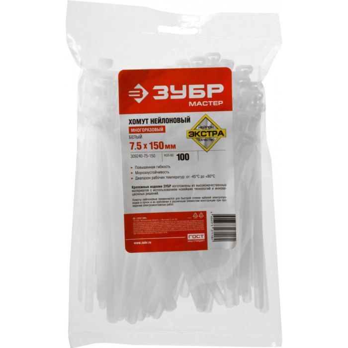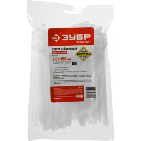 - Диапазон рабочих температур от -35°С до +80°С допускает использование стяжек в самых разнообразных условиях. Монтаж должен производится при температуре от -0°С до +60°С