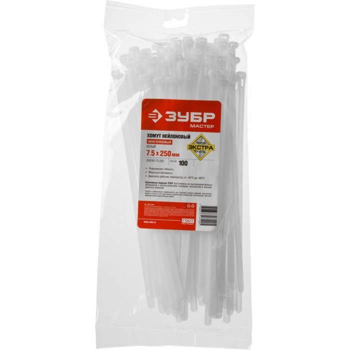 - Диапазон рабочих температур от -35°С до +80°С допускает использование стяжек в самых разнообразных условиях. Монтаж должен производится при температуре от -0°С до +60°С