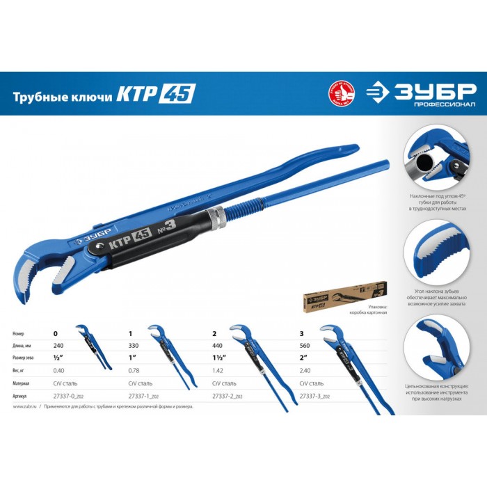 Трубный ключ КТР-45, №1, 1", 330 мм ЗУБР Профессионал 27337-1_z02