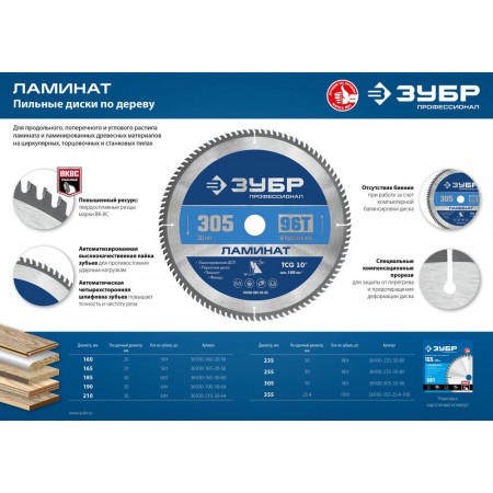Специальный пильный диск для аккуратных и чистых резов. Идеально подходит для продольных и поперечных пропилов ламината и ламинированных древесных материалов.
