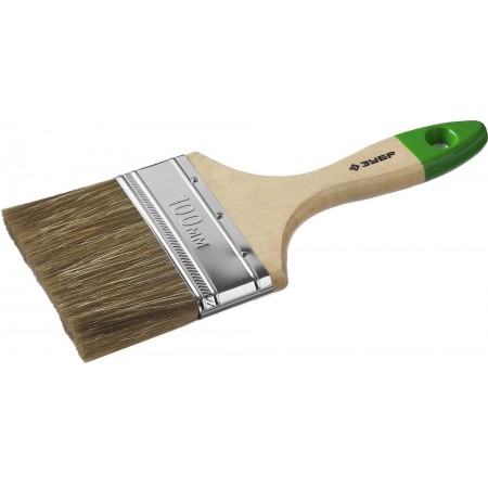 Плоская кисть ЛАЗУРЬ, 100 мм, 4", светлая смешанная щетина, деревянная ручка ЗУБР 4-01009-100
