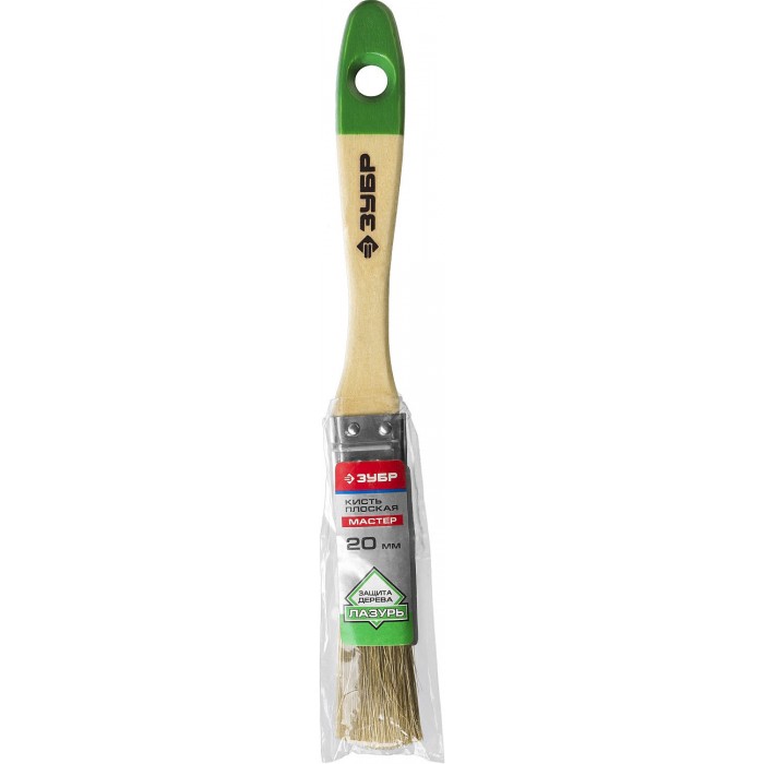 Плоская кисть ЛАЗУРЬ, 20 мм, 3/4", светлая смешанная щетина, деревянная ручка, для высокотекучих ЛКМ ЗУБР 4-01009-020
