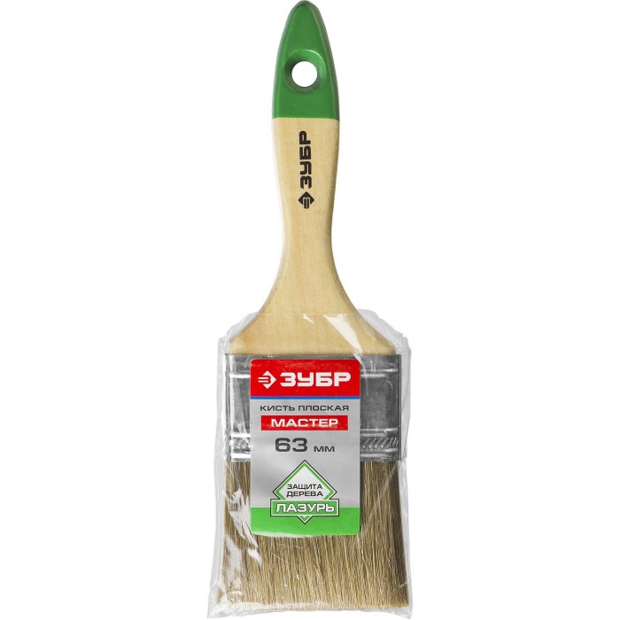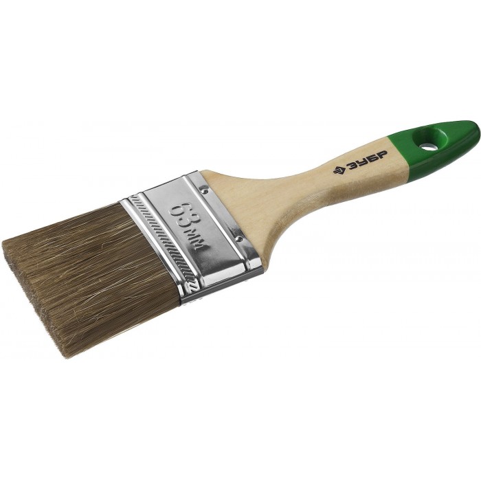 Плоская кисть ЛАЗУРЬ, 63 мм, 2.5", светлая смешанная щетина, деревянная ручка ЗУБР 4-01009-063