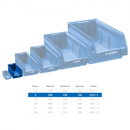 Складской лоток 5 л 250 х 150 х 130 мм Профессионал ЗУБР ЛСК-5 38061-5