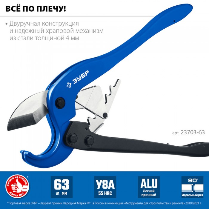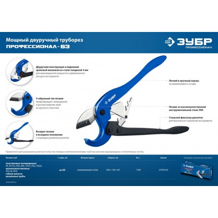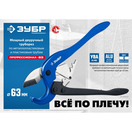 Труборез М-300, до 63 мм, мощный двуручный, по металлопластиковым и пластиковым трубам ЗУБР Профессионал 23703-63_z01