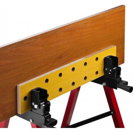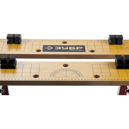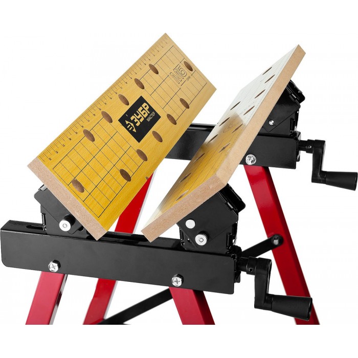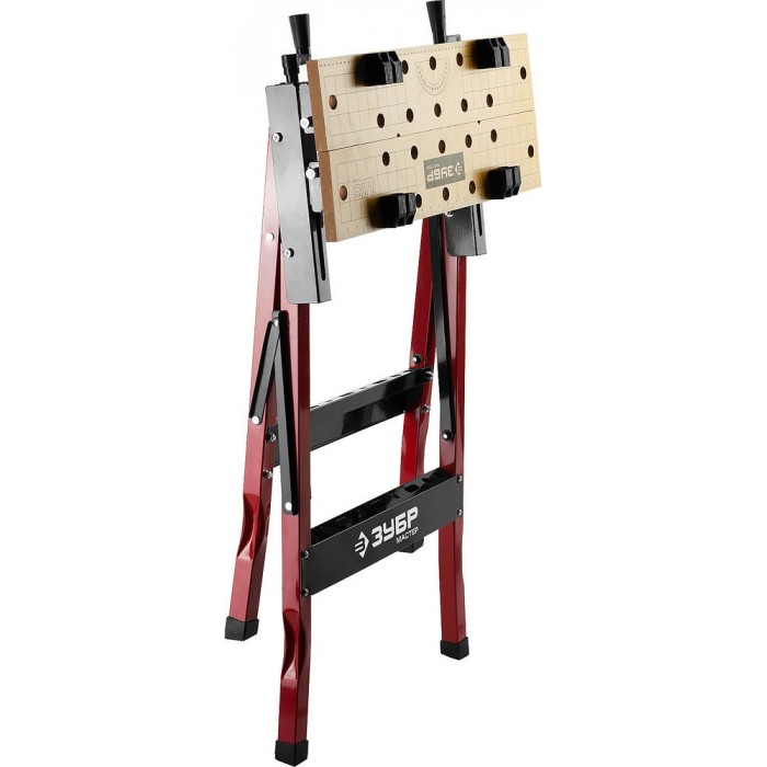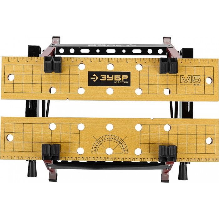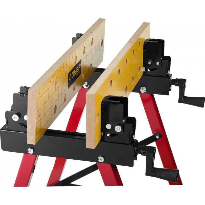 Незаменимый помощник в мастерской, в гараже и в домашних условиях. Предназначен для проведения столярных работ. Благодаря складному каркасу удобен в хранении и транспортировке. Столешница состоит из статической и подвижной части, фиксируемой двумя вращающимися ручками. Для удобства в работе столешница оснащена отверстиями и фиксаторами заготовок любой формы.
