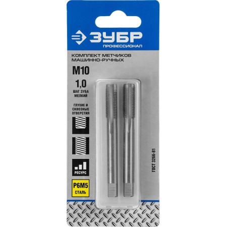 Комплект машинно-ручных метчиков сталь Р6М5 Профессионал ЗУБР М10 x 1.0 мм 4-28007-10-1.0-H2