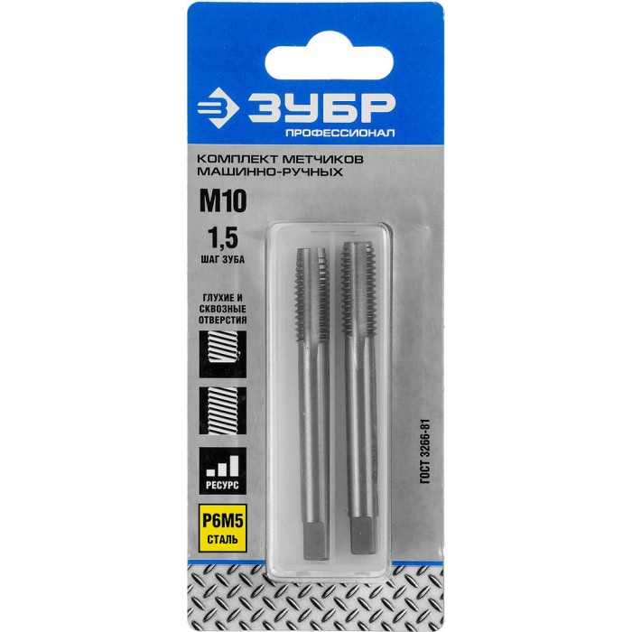 Комплект машинно-ручных метчиков сталь Р6М5 Профессионал ЗУБР М10 x 1.5 мм 4-28007-10-1.5-H2