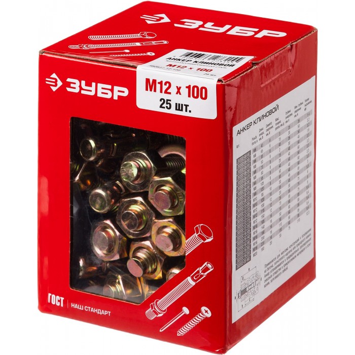 ЗУБР М12 х 100 мм, 25 шт, клиновой анкер (302032-12-100)