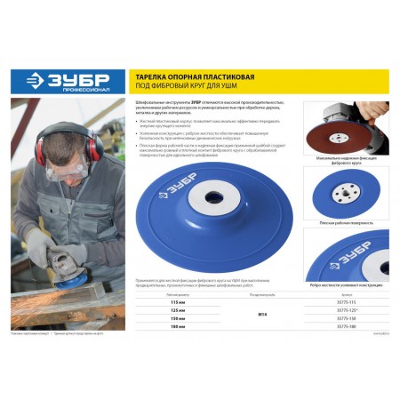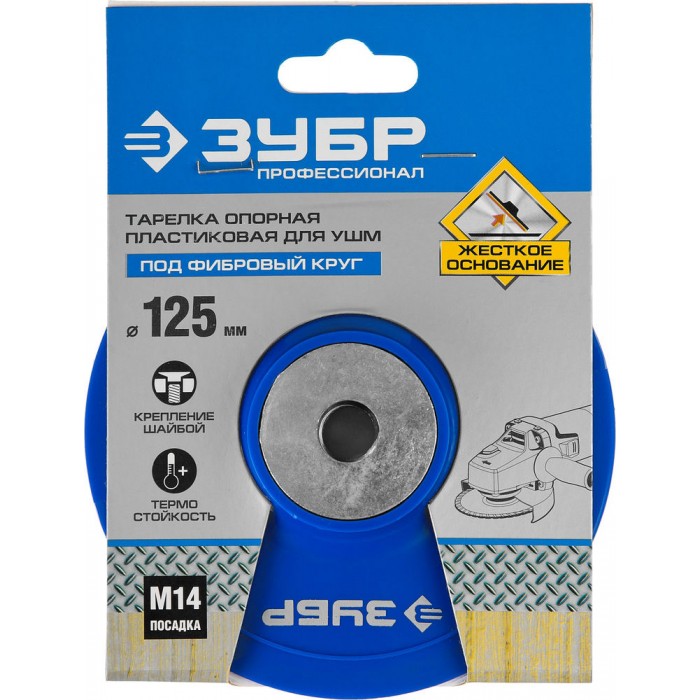 Опорная тарелка ЗУБР применяется для жесткой фиксации фибрового круга при выполнении шлифовальных работ на УШМ.