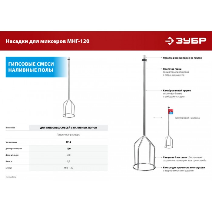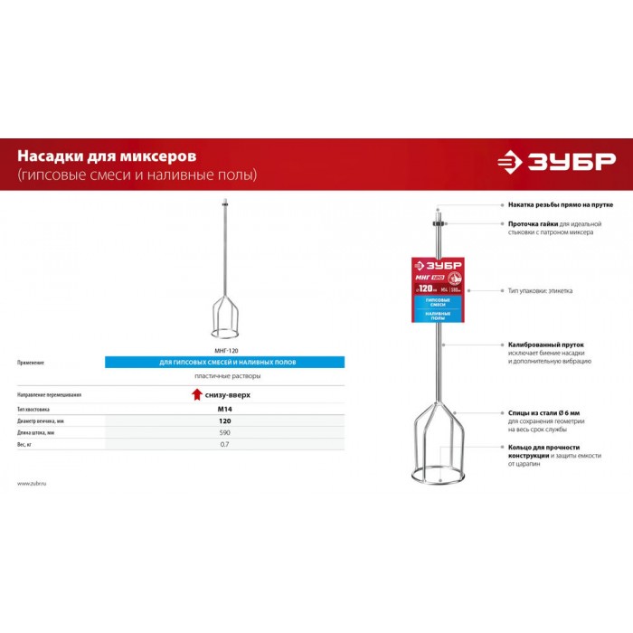 Насадка с лопастями для перемешивания гипсовых смесей и наливных полов. Используется совместно с ручными миксерами ЗУБР ЗМР-1200Э-1, МР-1050-1, МР-1100, МР-1400-2 и МР-1600-2. Сделано в России