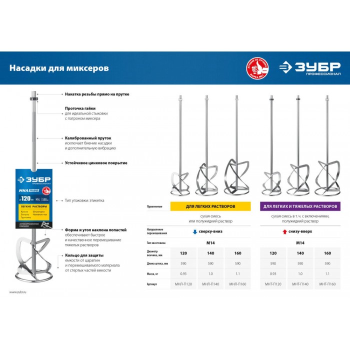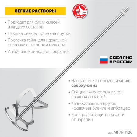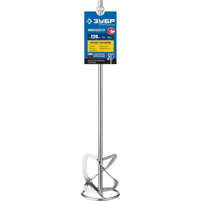 Насадка с лопастями для перемешивания легких растворов (краска, грунтовка, штукатурка, наливной пол, затирка). Используется совместно с ручными миксерами ЗУБР ЗМР-1200Э-1, МР-1050-1, МР-1100, МР-1400-2 и МР-1600-2. Не поддается коррозии и не деформируется даже при эксплуатации в тяжелых условиях. Сделано в России