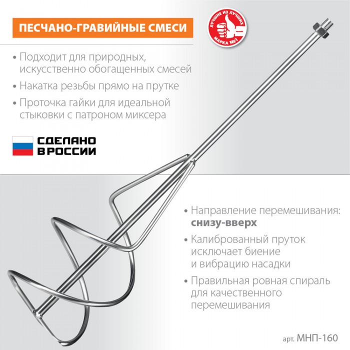 Насадка с лопастями для перемешивания песчано-гравийных смесей. Используется совместно с ручными миксерами ЗУБР ЗМР-1200Э-1, МР-1050-1, МР-1100, МР-1400-2 и МР-1600-2. Сделано в России