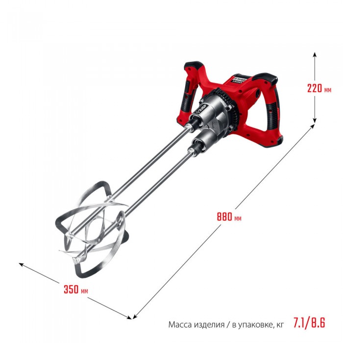 - Мощный двигатель и высокий крутящий момент позволяют размешивать строительные смеси быстро и без перегрузки