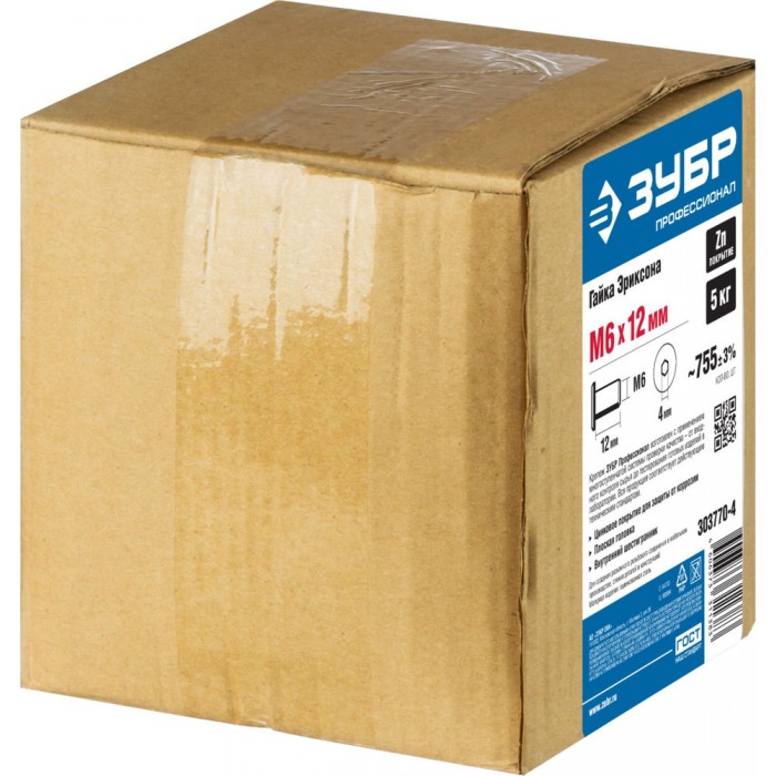 Гайка Эриксона с плоской головкой M6 x 12 мм, шест. 4 мм, цинк, 5 кг ЗУБР Профессионал 303770-4
