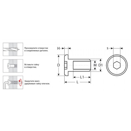 • Внутренний шестигранник допускает многократное использование гайки без износа шлица