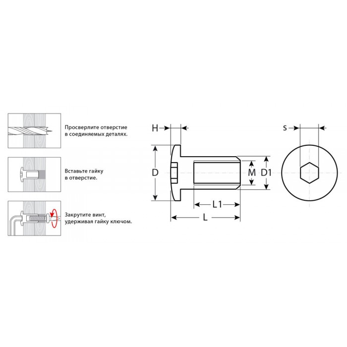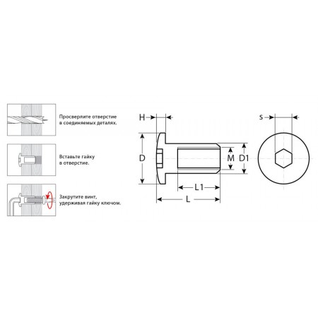 • Внутренний шестигранник допускает многократное использование гайки без износа шлица