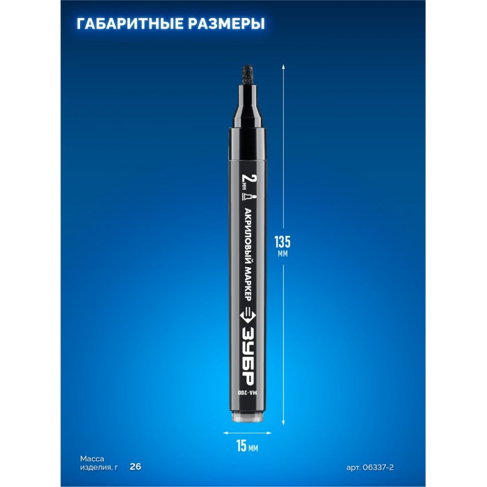 Маркер акриловый с пулевидным наконечником. Пишет практически на любых поверхностях. Водная основа экологична и не пахнет. Акриловая краска обладает повышенной укрывностью.
