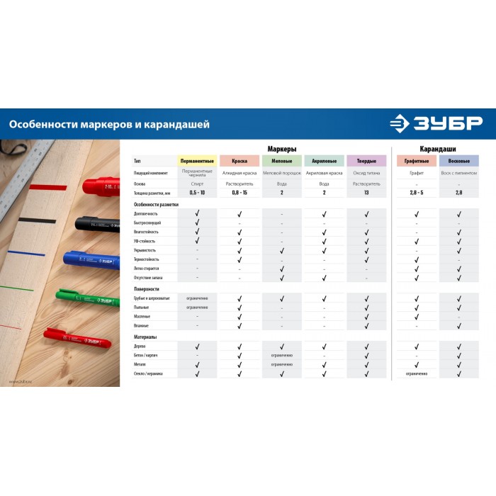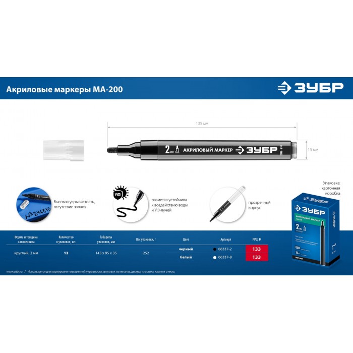 Используется для маркировки, повышенной укрывности, заготовок из металла, дерева, пластика, камня и стекла.