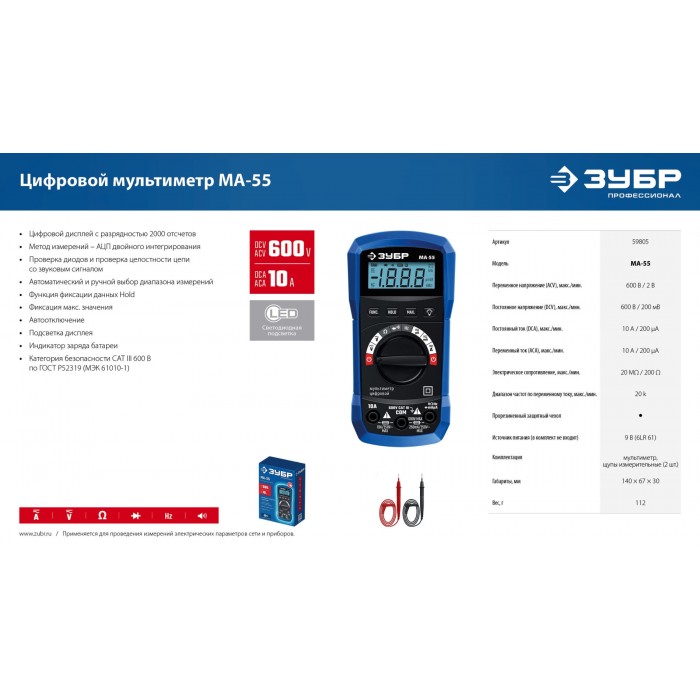 ЗУБР МА-55 цифровой мультиметр (59805)