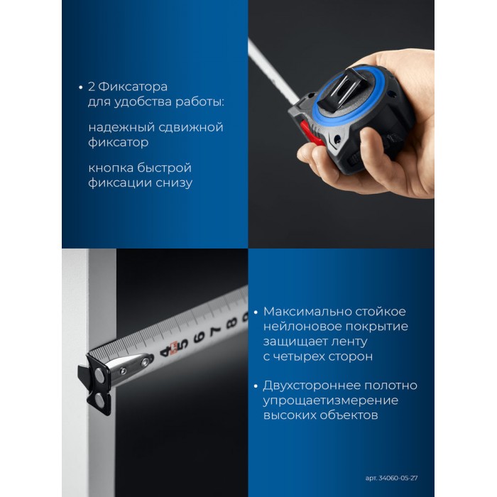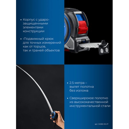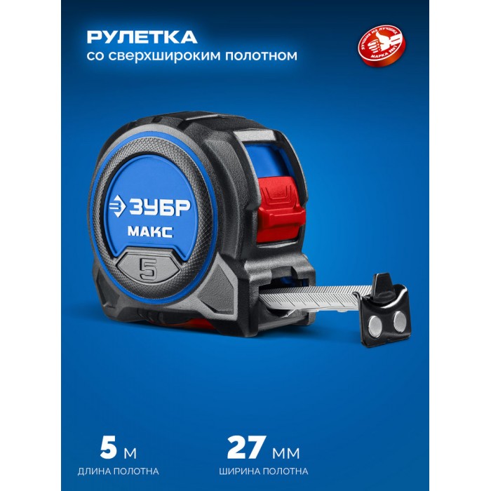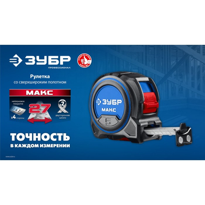 Рулетка со сверхшироким полотном ЗУБР МАКС 5м х 27мм 34060-05-27