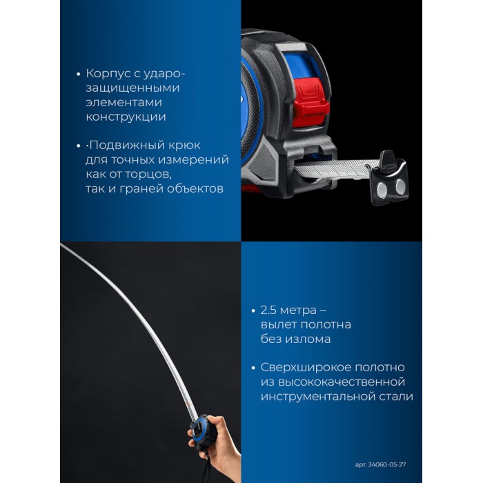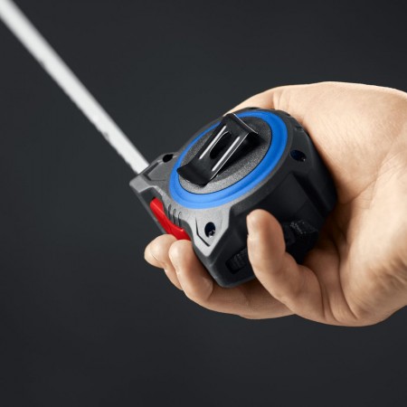 Мощная профессиональная рулетка с сверхшироким полотном обеспечивающим большой вылет полотна без излома, предназначена для проведения линейных замеров