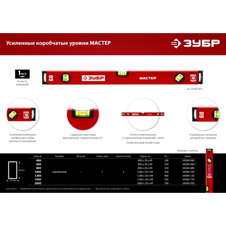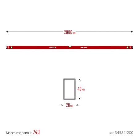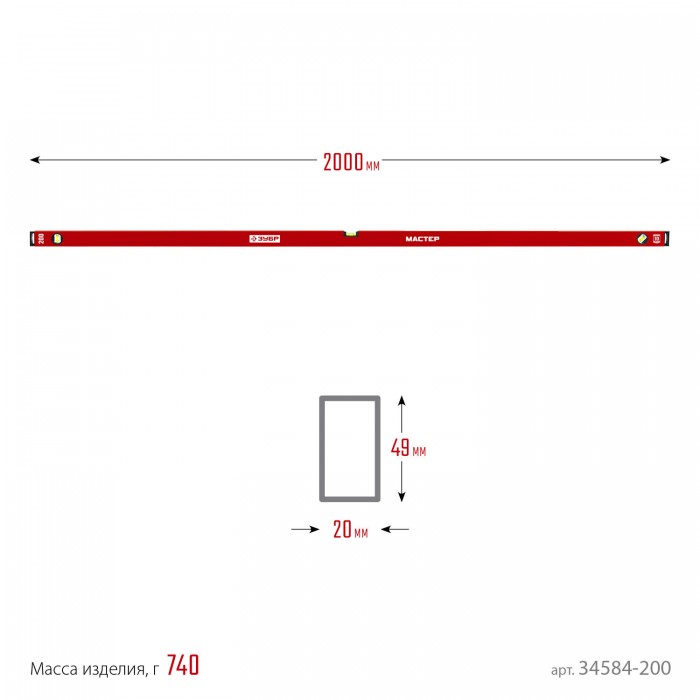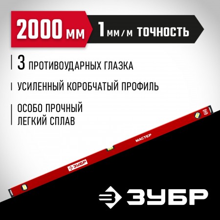 ЗУБР МАСТЕР, 2000 мм, уровень с усиленным профилем (34584-200_z01)