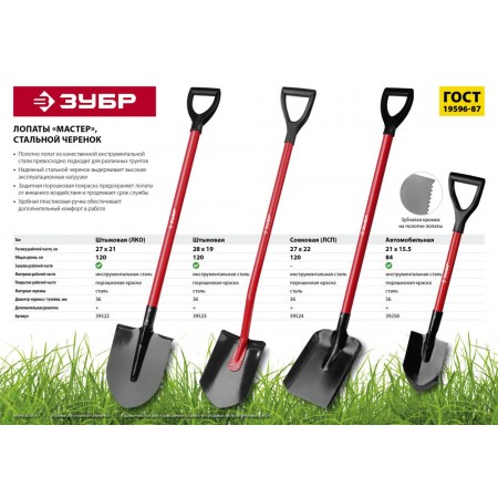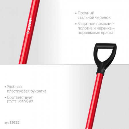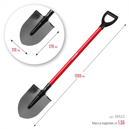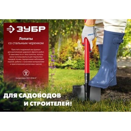 Штыковая лопата 270 х 210 х 1200 мм полотно 1.5 мм закалено стальной прямой черенок с рукояткой тип ЛКО ЗУБР МАСТЕР 39522