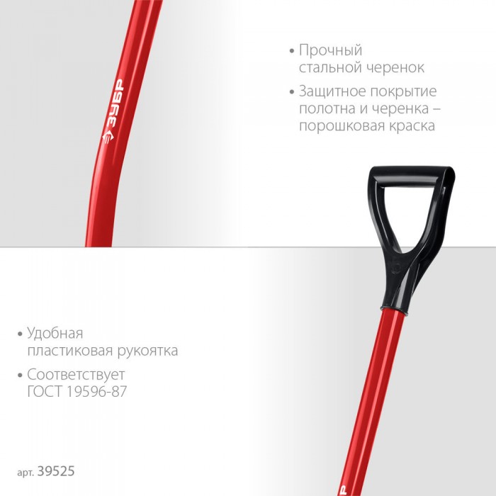 Лопата совковая МАСТЕР, 295 х 230 х 1200 мм, полотно 1.5 мм, закалено, стальной изогнутый черенок с рукояткой, тип ЛСП ЗУБР 39525