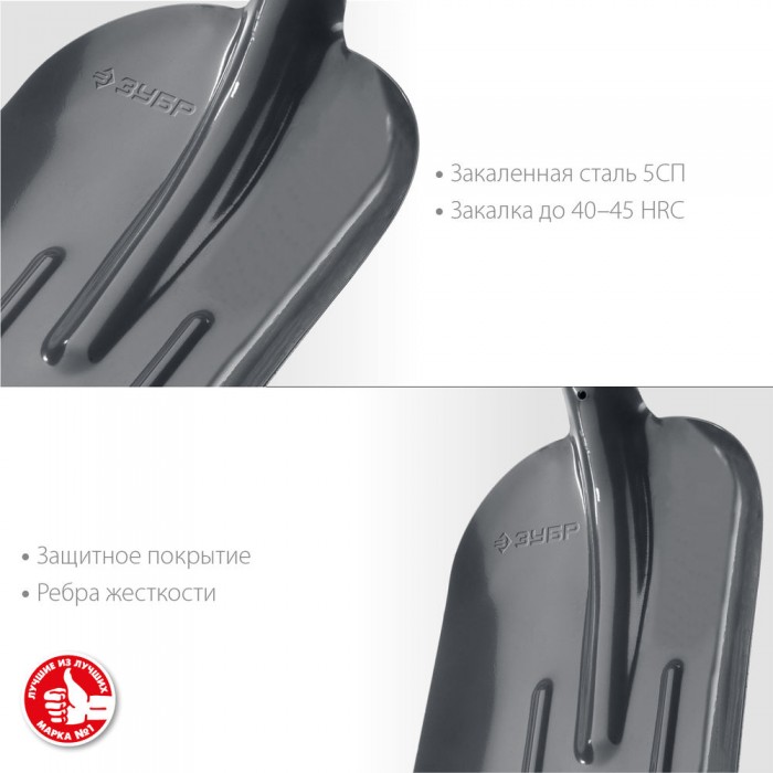 Совковая лопата 360 х 230 мм полотно 1.6 мм закалено с рёбрами жёсткости без черенка тип ЛСП ЗУБР Мастер 39428