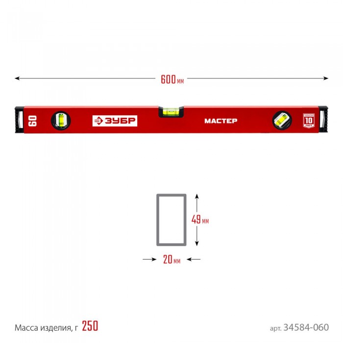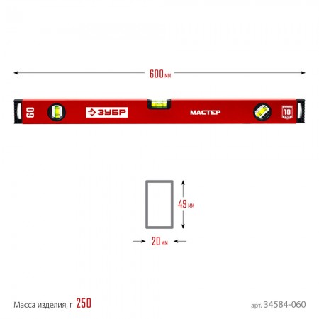 Уровень с усиленным профилем МАСТЕР, 600 мм ЗУБР 34584-060_z01