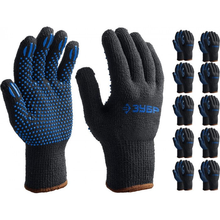 Перчатки трикотажные МАСТЕР, L-XL, с точечным ПВХ покрытием, утеплённые, противоскользящие, 10 пар ЗУБР 11462-H10