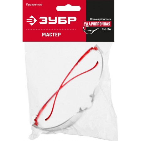 Очки защитные Мастер, открытого типа, прозрачные, широкое моностекло, облегчённые ЗУБР 110325_z01