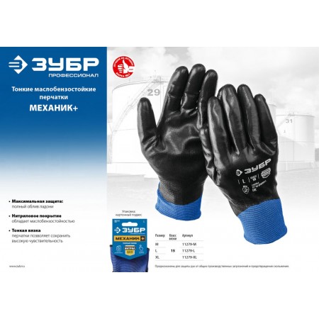 Перчатки МЕХАНИК+, L (9), с полным нитриловым обливом, маслобензостойкие, 15 класс ЗУБР Профессионал 11279-L