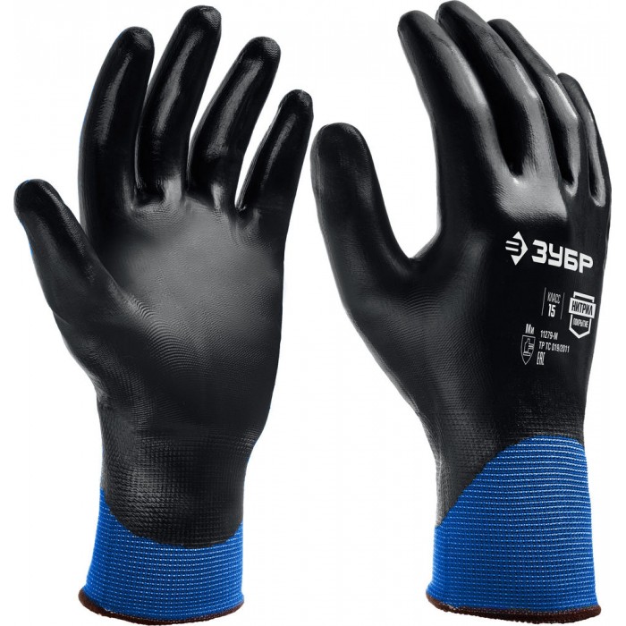 Перчатки МЕХАНИК+, M (8), с полным нитриловым обливом, маслобензостойкие, 15 класс ЗУБР Профессионал 11279-M