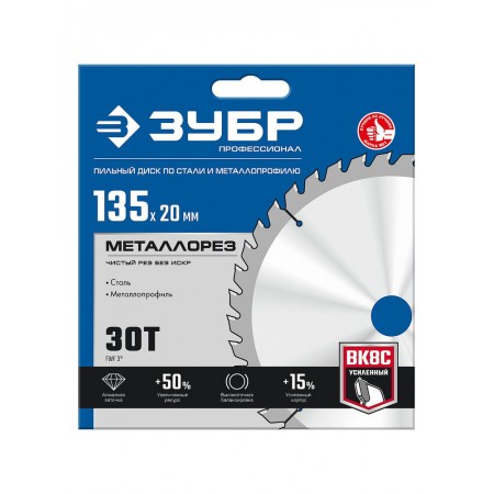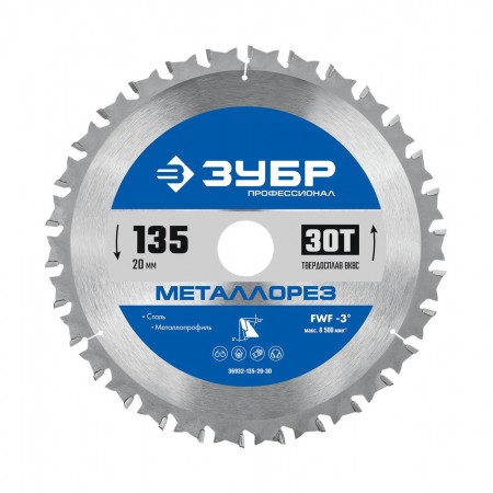 Пильный диск по металлу и металлопрофилю Металлорез 135 х 20 мм, 30Т ЗУБР Профессионал 36932-135-20-30