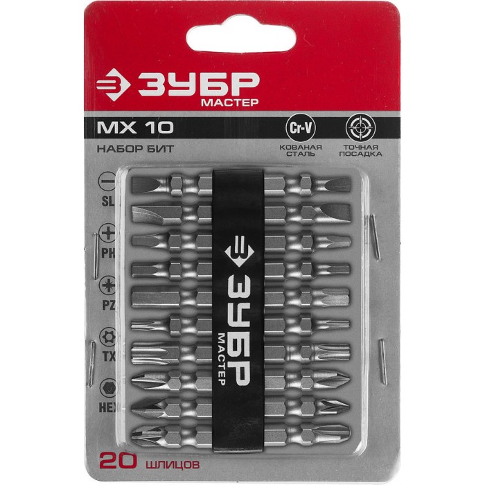 Набор бит двусторонних длинных МХ-10, 10 шт ЗУБР 26089-H10