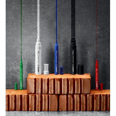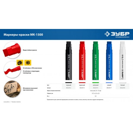 Универсальный маркер с жидкой быстросохнущей краской подходит для любой поверхности. Не смывается водой, не выгорает на солнце и устойчив к температурным перепадам. Практически безопасен для человека, т.к. не содержит токсических веществ.