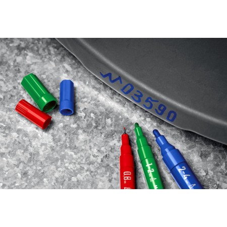 Универсальный маркер с жидкой быстросохнущей краской подходит для любой поверхности. Не смывается водой, не выгорает на солнце и устойчив к температурным перепадам. Практически безопасен для человека, т.к. не содержит токсических веществ.
