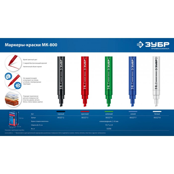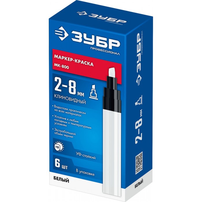 Маркер-краска клиновидный МК-800 белый, 2-8 мм ЗУБР 06327-8