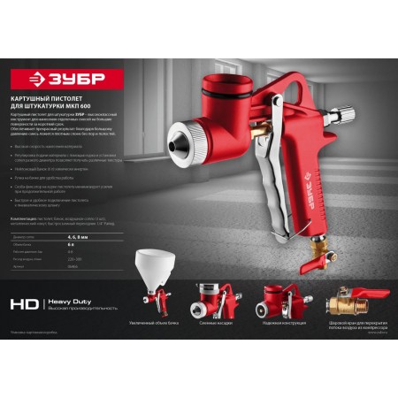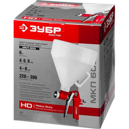 Пистолет для штукатурки MKP 600, 4, 6, 8 мм, картушный, верхний бачок ЗУБР 06466