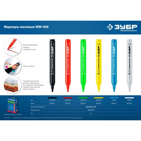 Меловой маркер с жидкой краской на водной основе подходит для гладких и слегка шероховатых повехностей, меловых досок, вывесок. Легко стирается, не оставляя следов. Безопасен для человека, т.к. практически не содержит токсических веществ.