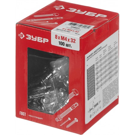 Анкер для пустотелых конструкций МОЛЛИ, М4 х 32 х 8 мм, 100 шт ЗУБР 302472-04-032