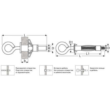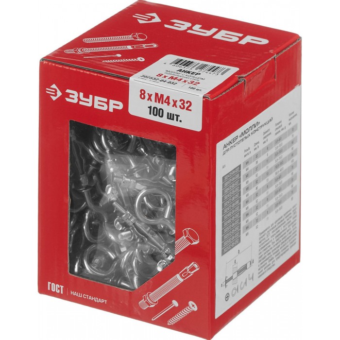 Анкер с кольцом для пустотелых конструкций МОЛЛИ, М4 х 32 х 8 мм, 100 шт ЗУБР 302532-04-032
