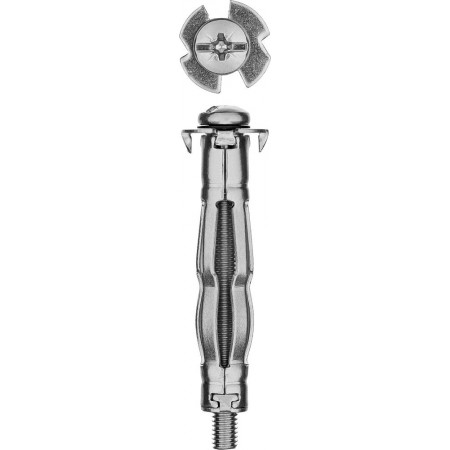 Для крепления различных конструкций к пустотелым стеновым панелям, гипсокартону, ДСП, гипсоволоконным листам (ГВЛ), потолочным покрытиям с пустотами. Установка анкера производится при помощи заклепочника для анкеров. Винт анкера имеет шлиц PH&SL.