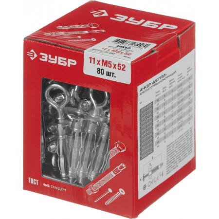 Анкер с кольцом для пустотелых конструкций МОЛЛИ, М5 х 52 х 11 мм, 80 шт ЗУБР 302532-05-052