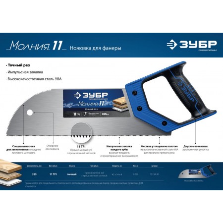 Ножовка для фанеры Молния 11, 325 мм, 11 TPI ЗУБР Профессионал 15158-30_z01