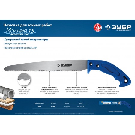 Ножовка универсальная Молния 15, 250 мм ЗУБР Профессионал 15154-250